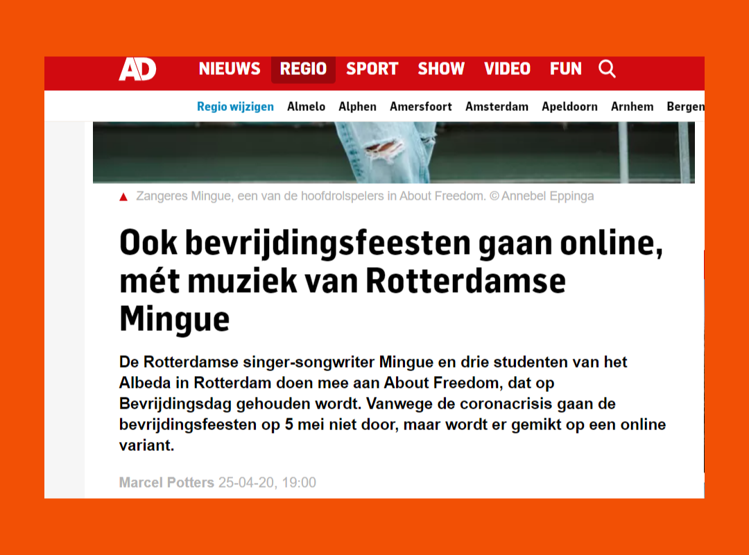De Rotterdamse singer-songwriter Mingue en drie studenten van het Albeda in Rotterdam doen mee aan About Freedom, dat op Bevrijdingsdag gehouden wordt. Vanwege de coronacrisis gaan de bevrijdingsfeesten op 5 mei niet door, maar wordt er gemikt op een online variant.